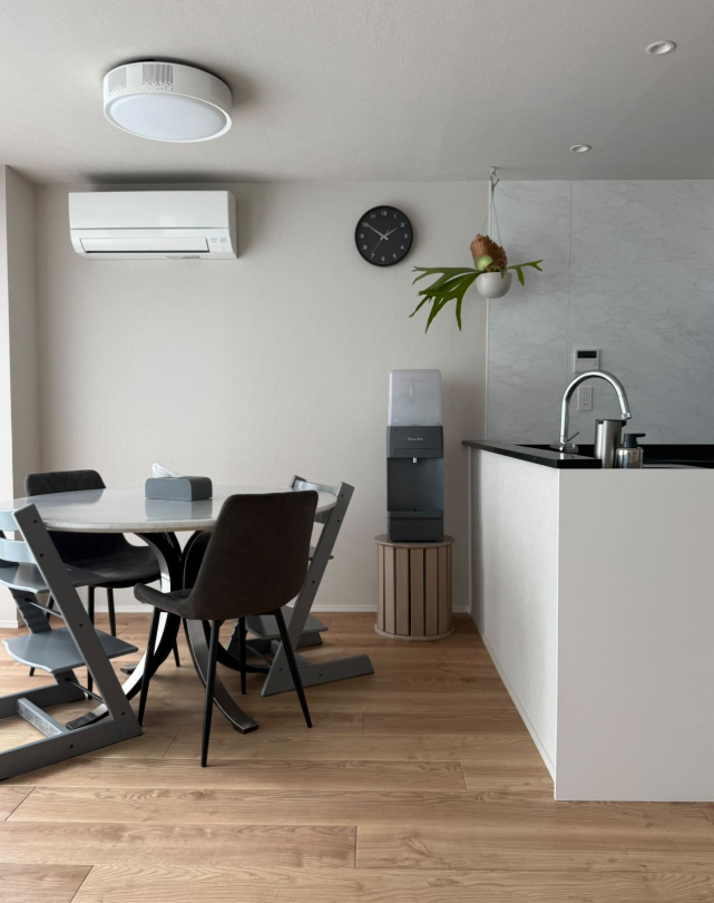 テーブルやキッチンカウンターにも置けるニュアンスカラーの卓上型モデルのウォーターサーバーです。