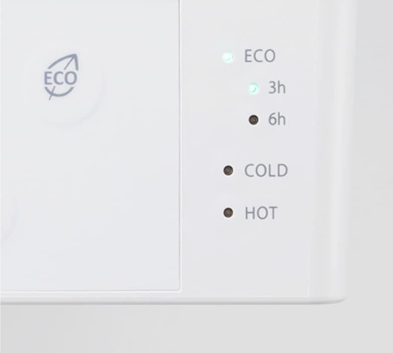 お部屋が暗い時に作動する光センサーエコモードに加え、3時間エコモード、6時間エコモードを搭載しており、消費電力を抑えて経済的にご利用いただけます。操作パネルから簡単に設定が可能です。