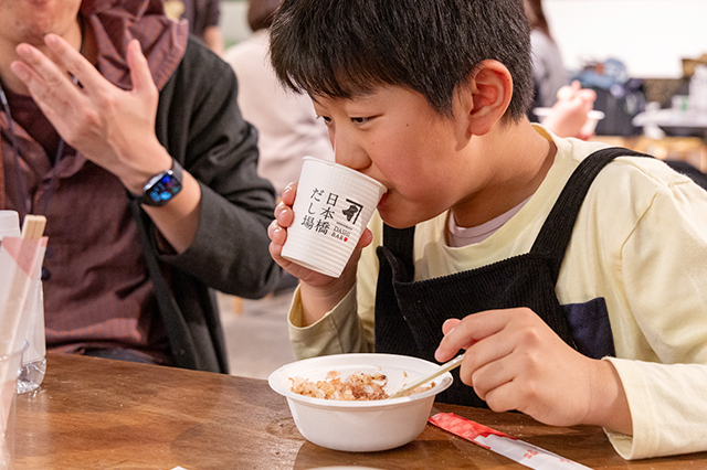 鰹節専門店「にんべん」のだしを使って「うま味」や「香り」を五感で体験しながら、素材の良さを引き出す天然水の魅力や大切さを学んでいただく、親子での食育の機会を創出することを目的に本イベントを実施いたしました。