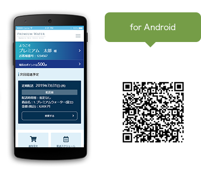 スマートフォンをご利用の方は、公式アプリをダウンロードしていただくことで、アプリからいつでもお水の追加注文や定期配送日の確認・変更などがおこなえます。