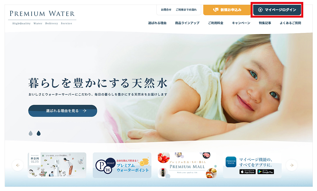 - プレミアムウォーターからのお知らせの確認