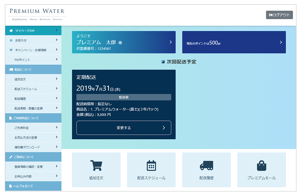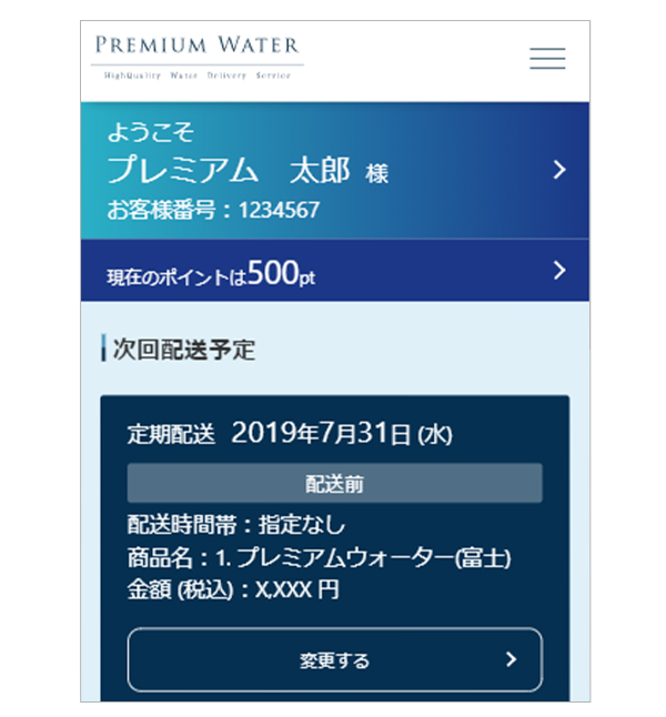 プレミアムウォーターでは、「追加注文」・「定期配送日の確認・変更」が公式スマホアプリやマイページの操作で簡単におこなえます。