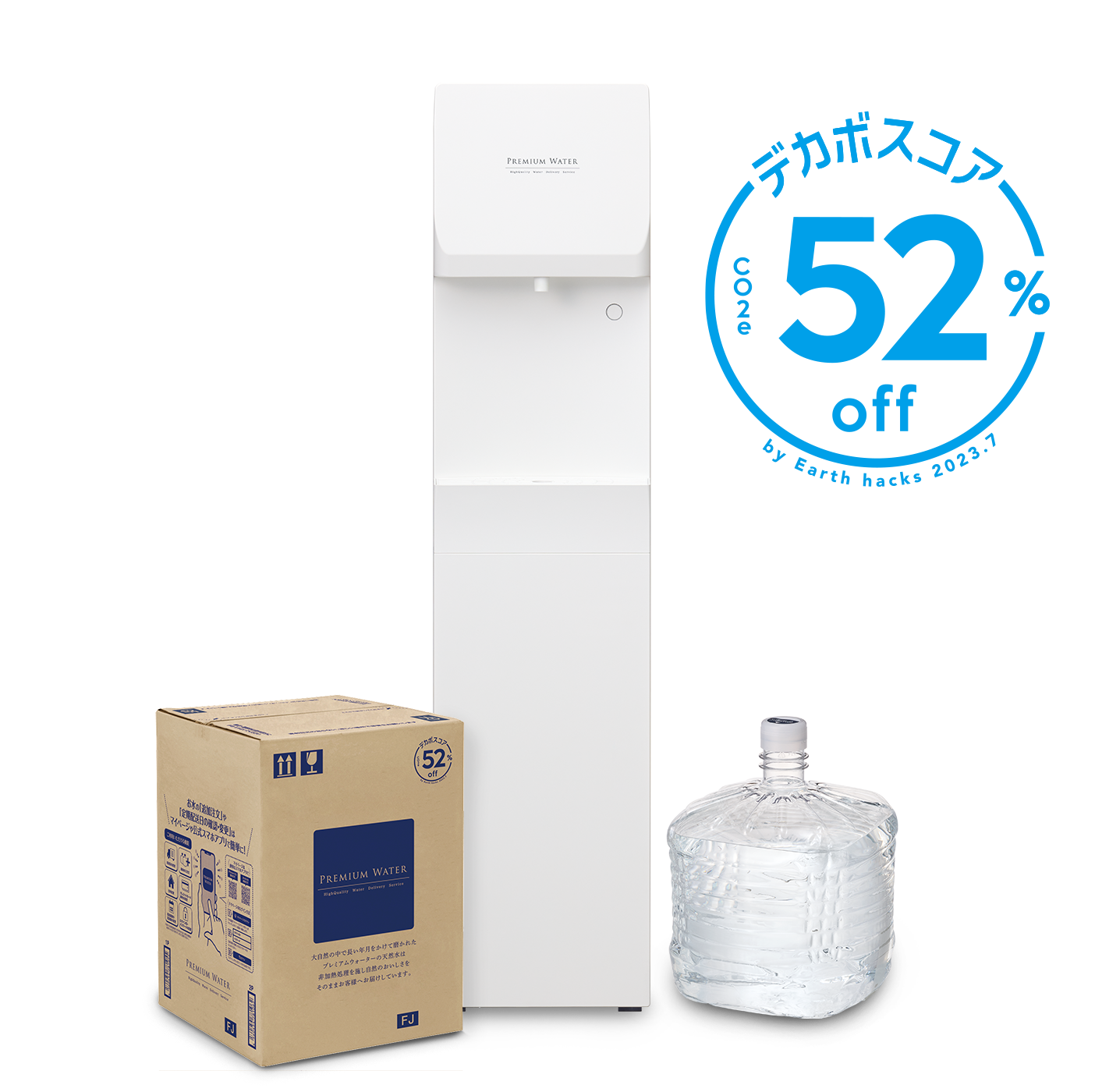 プレミアムウォーターは、商品やサービスのCO2e排出削減率を可視化したマーク「デカボスコア」を取得しました。